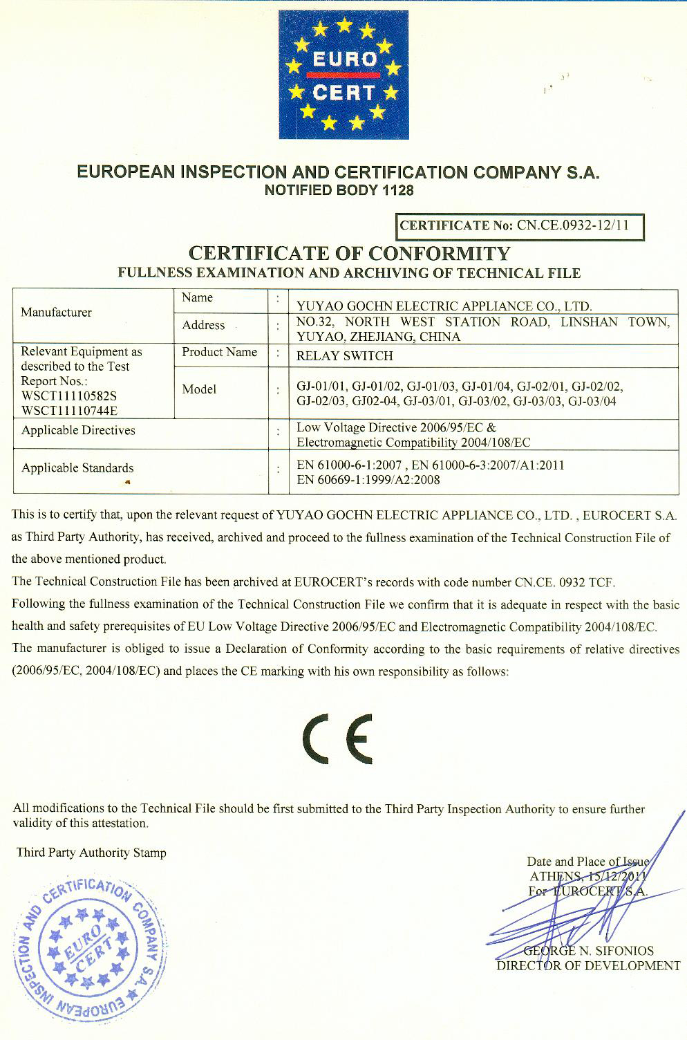 繼電器CE證書